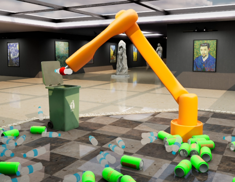 You play as an industrial arm robot who is destined to collect garbage at the art gallery. No goal, no timer, only art. Do what you are made to do - collect garbage :)